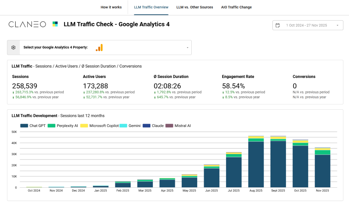 Die Lösung: Das LLM-Traffic-Check-Dashboard von Claneo