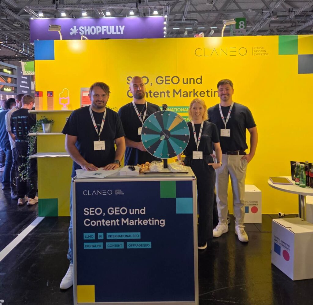 Wie in den Vorjahren war Claneo auch 2025 mit einem eigenen Stand vertreten – diesmal in der World of Agencies in Halle 8.1, Stand D026. Unser Team nutzte die hervorragende Gelegenheit, um mit Kund:innen, Partner:innen und Interessierten in den direkten Austausch zu treten. Besonders gefragt waren unsere Expertisen in den zukunftsweisenden Bereichen SEO, Generative Engine Optimization (GEO) und Content Marketing – Disziplinen, die im Zeitalter der künstlichen Intelligenz vor revolutionären Herausforderungen – aber auch beispiellosen Möglichkeiten – stehen.