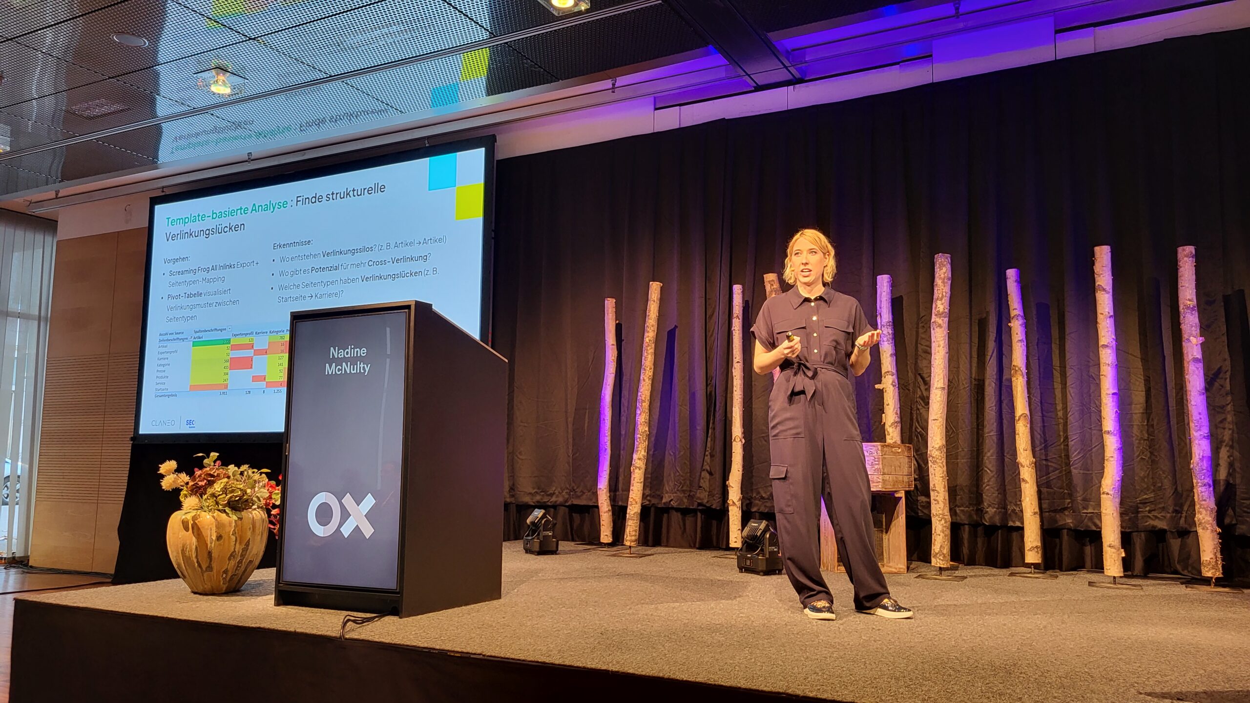 Selbstverständlich kam einer der besten Vorträge des Tages aus unseren eigenen Reihen! Unsere Kollegin Nadine McNulty hat eindrucksvoll und anschaulich gezeigt, wie viel Power im oft unterschätzten Thema der internen Verlinkung steckt. Ihr Vortrag war eine absolute Hands-on-Anleitung, die man am liebsten sofort selbst ausprobieren möchte.