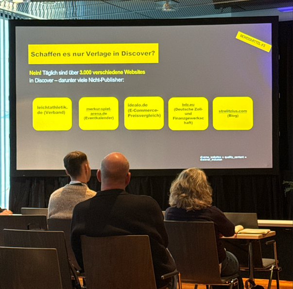 Millionen von Klicks innerhalb kürzester Zeit: Das ist möglich mit Google Discover. In seinem Vortrag gewährte Björn Einblicke in die erfolgreichen Discover-Strategien der Aviv Group, die zeigen, wie sich mit gezieltem Content systematisch Traffic im Millionenbereich generieren lässt. Besonders spannend waren seine konkreten Learnings zu performenden Formaten, der Rolle von Freshness und Relevanz.