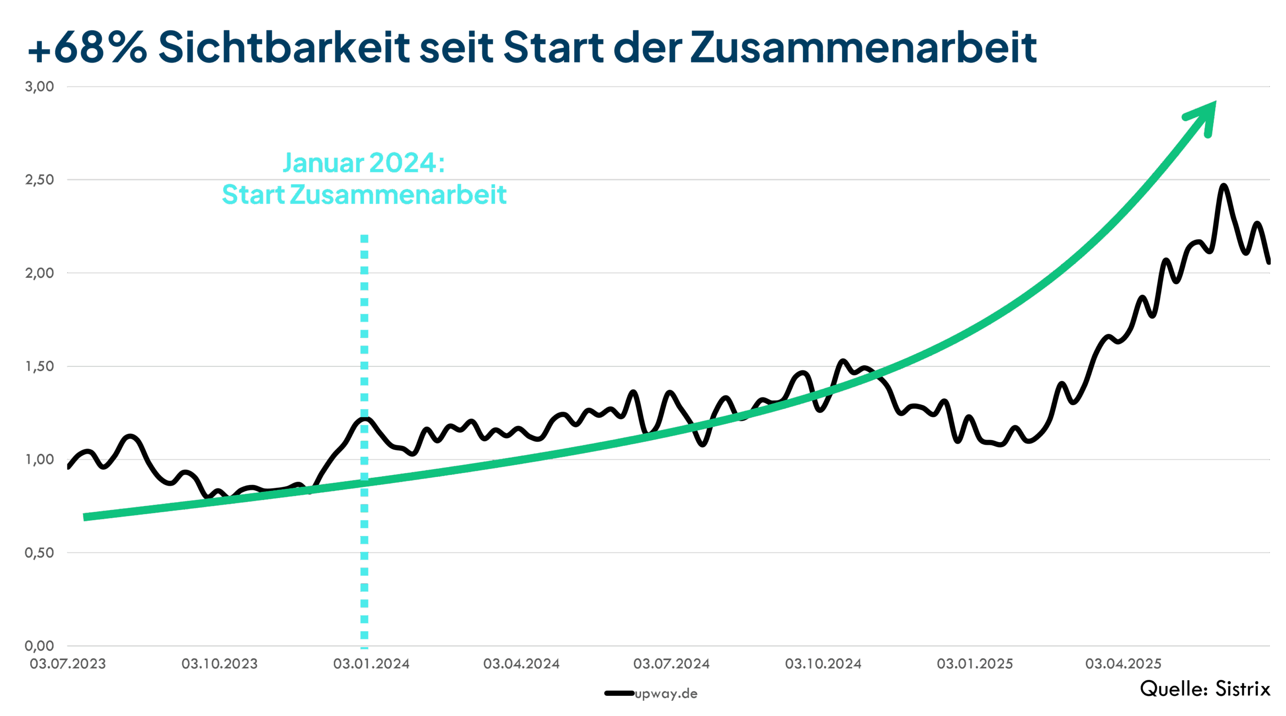Die konsequente Umsetzung der Strategie führte zu herausragenden Ergebnissen über alle definierten KPIs hinweg und etablierte SEO als einen der wichtigsten Umsatzkanäle für Upway.