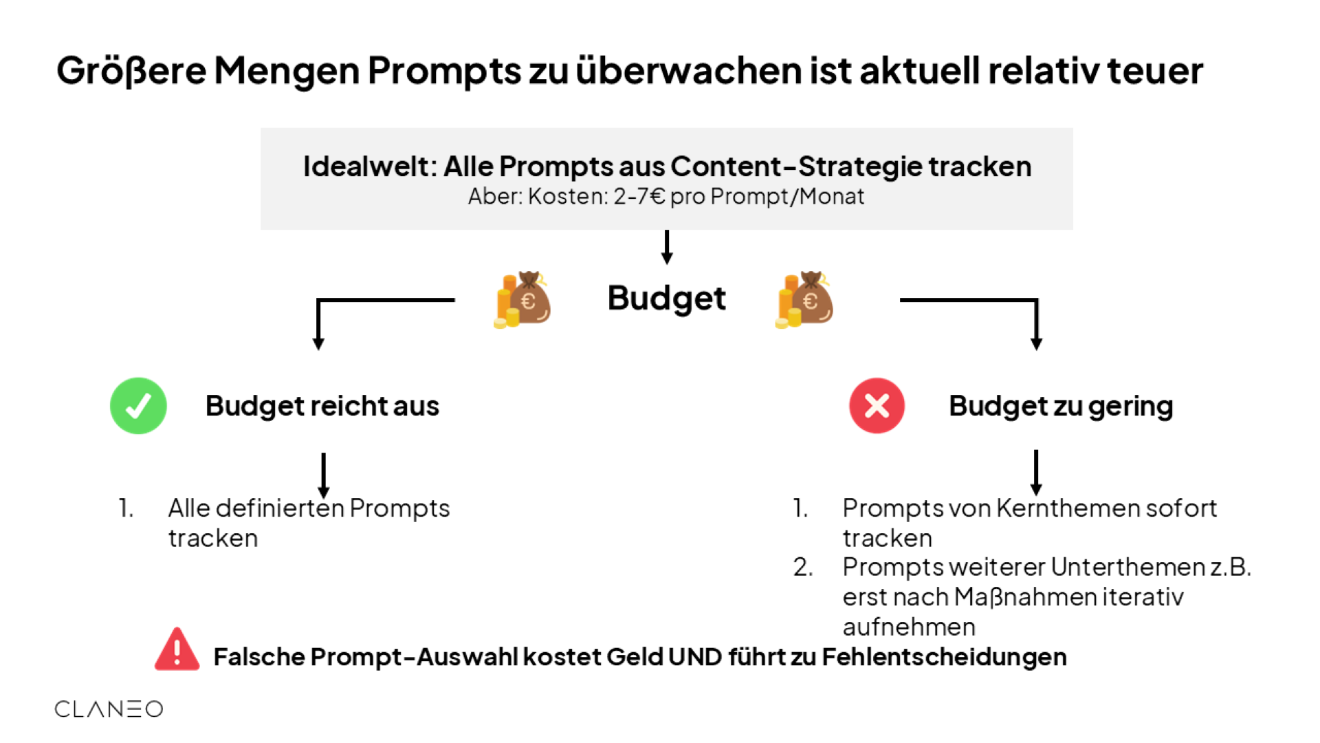 - Kosten-Bewusstsein: Prompt-Tracking ist teuer – strategische Priorisierung ist zwingend