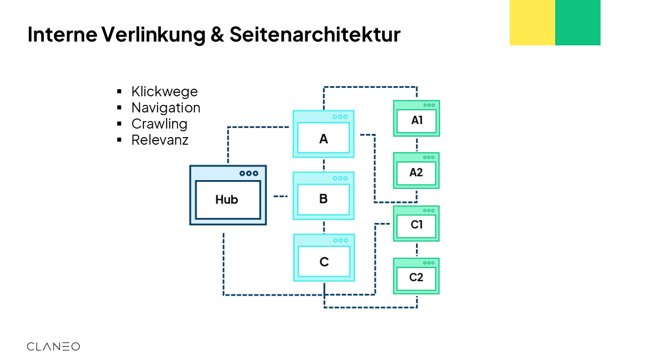 Kurze Klickwege signalisieren Wichtigkeit. Inhalte, die mit wenigen Klicks von der Startseite erreichbar sind, werden als relevanter eingestuft.