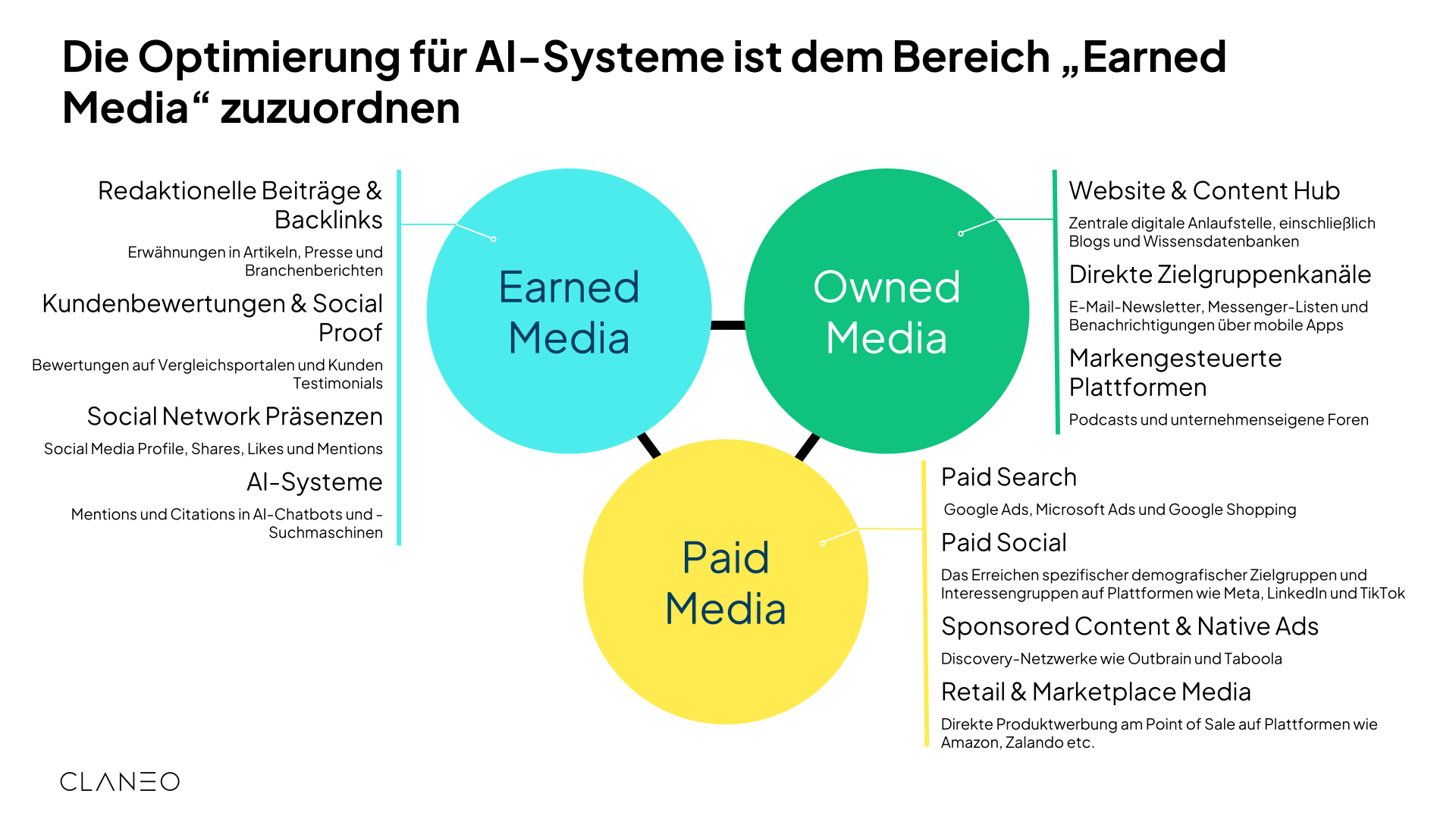 Diesen Bereich „verdienen“ wir uns durch gute Inhalte, eine starke Marke und positive Kundenbewertungen. Dazu gehören Presseerwähnungen, Social Media Shares und – ganz entscheidend – auch die Sichtbarkeit in KI-Systemen.