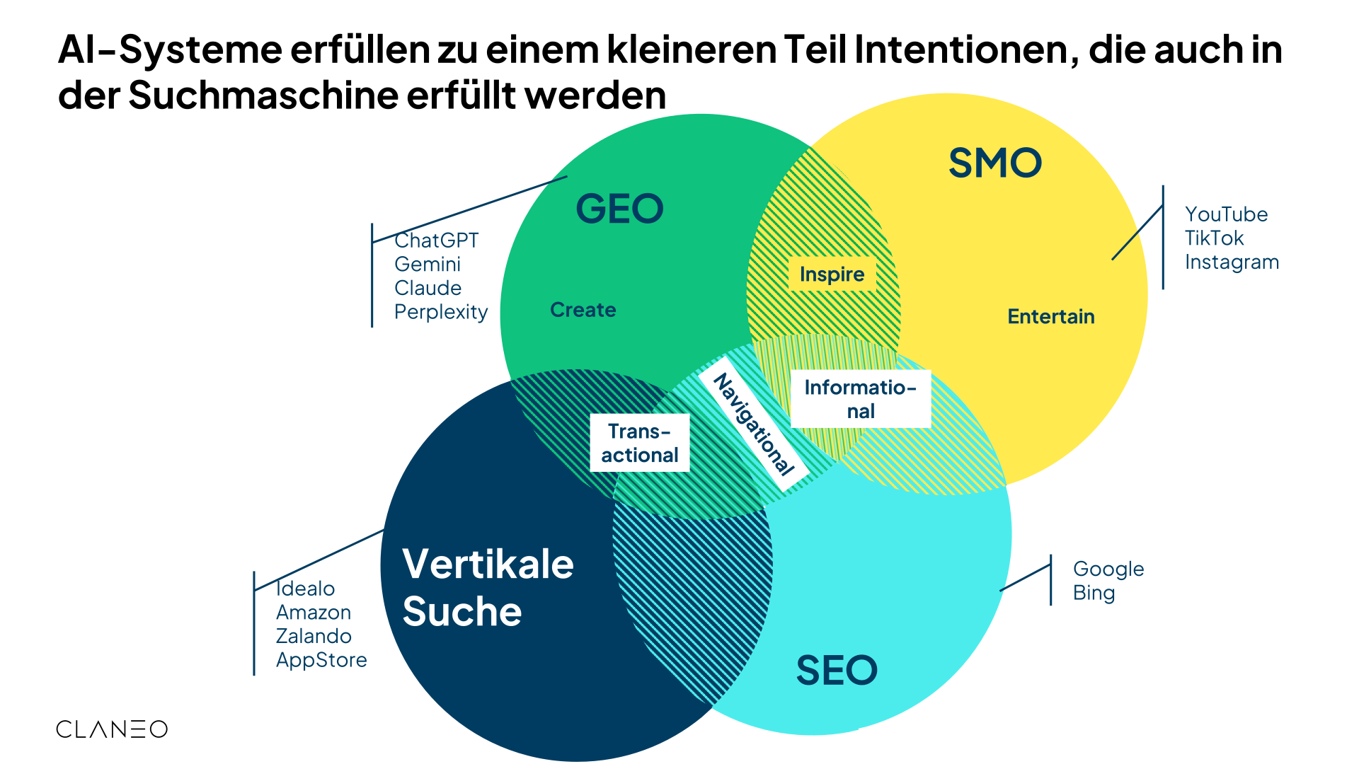 Auch hier zeigt sich die Nähe von GEO zu SEO: KI-Systeme sind in erster Linie Pull-Kanäle. Nutzer stellen eine konkrete Frage und erwarten eine relevante Antwort. Das bedeutet, dass die gleichen Prinzipien, die im SEO erfolgreich sind – das Verständnis für Nutzerintentionen, die Erstellung von hochwertigem Content und die Optimierung für Relevanz – auch im GEO von zentraler Bedeutung sind.