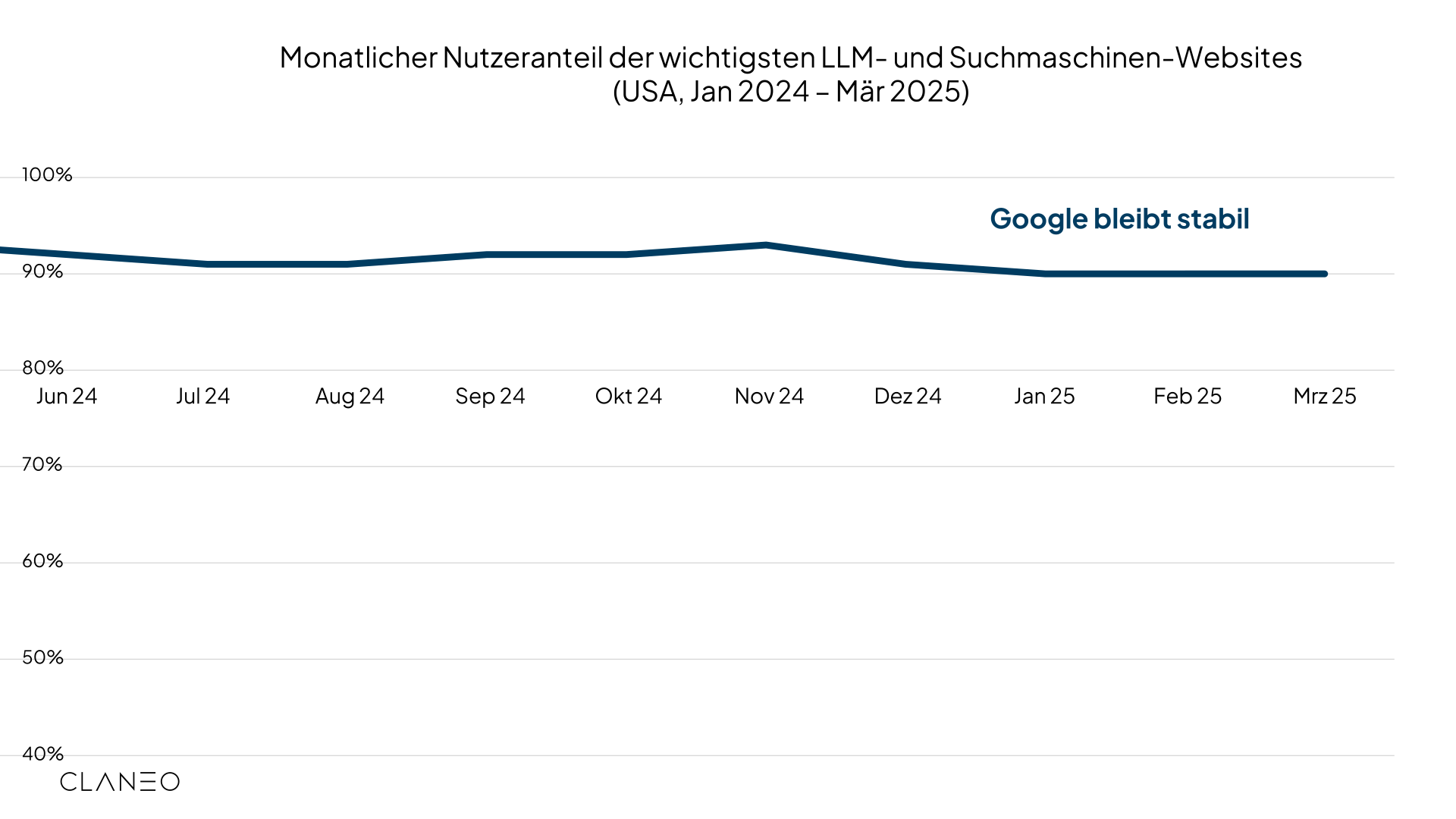 - Google bleibt dominant und stabil – keine Erosion erkennbar