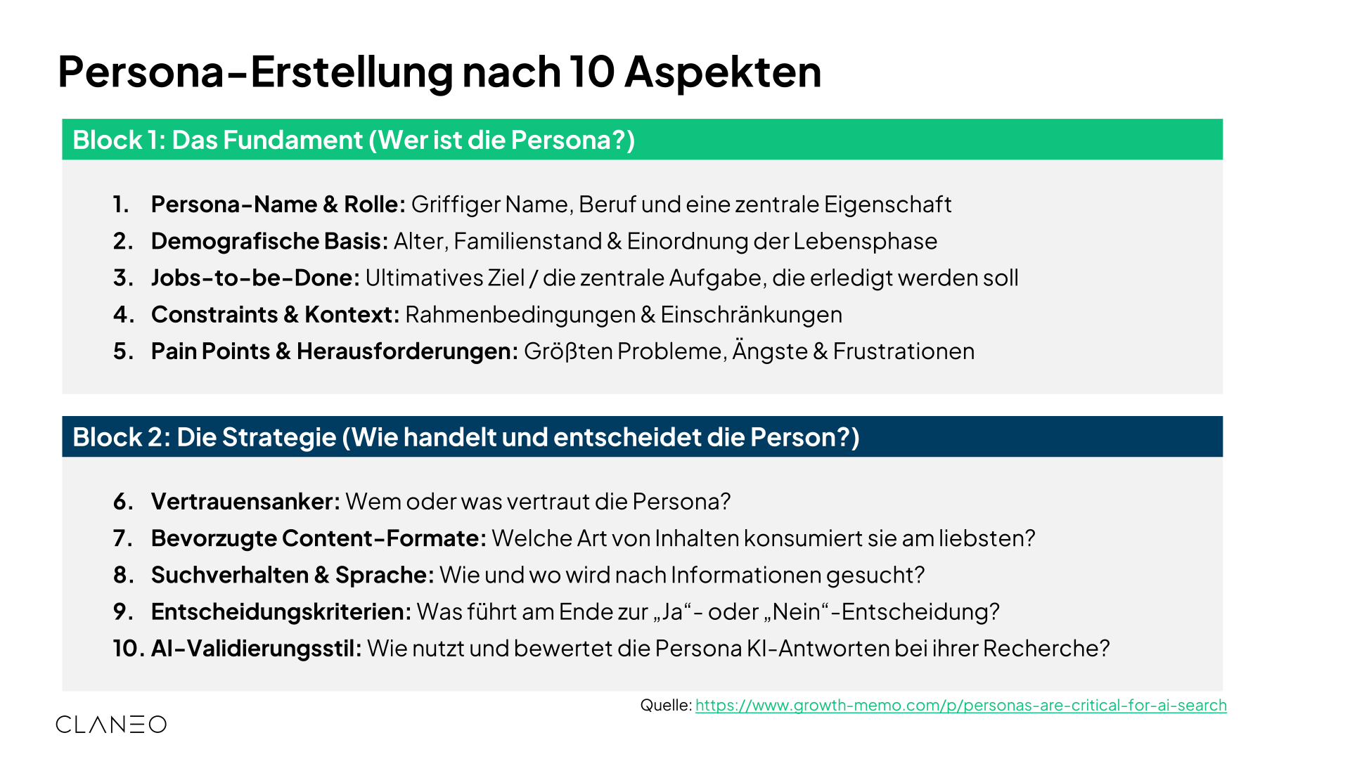 Erfolgreiche GEO-Strategien basieren auf tiefem Verständnis der Menschen hinter den KI-Nutzungen. Personas konkretisieren abstrakte Zielgruppen und machen Bedürfnisse, Motivationen und Entscheidungskriterien greifbar.