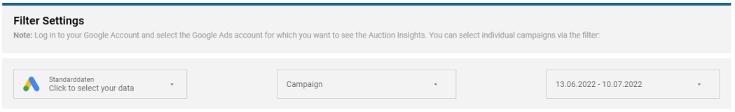 Eine wichtige Funktion innerhalb von Google Ads sind die Auktionsdaten. Mit Hilfe dieser Daten kann schnell ein Überblick darüber gewonnen werden, welche Webseiten zum direkten Wettbewerb um die Anzeigenplätze zählen. Innerhalb von Google Ads ist es nur möglich auf Account-Ebene oder in einzelnen Kampagnen und AdGroups die Auktionsdaten einzusehen und zu exportieren. Es kann kein Bericht erstellt werden, der beispielsweise die Daten für jede Kampagne oder jedes Keyword in einer Tabelle zeigt.