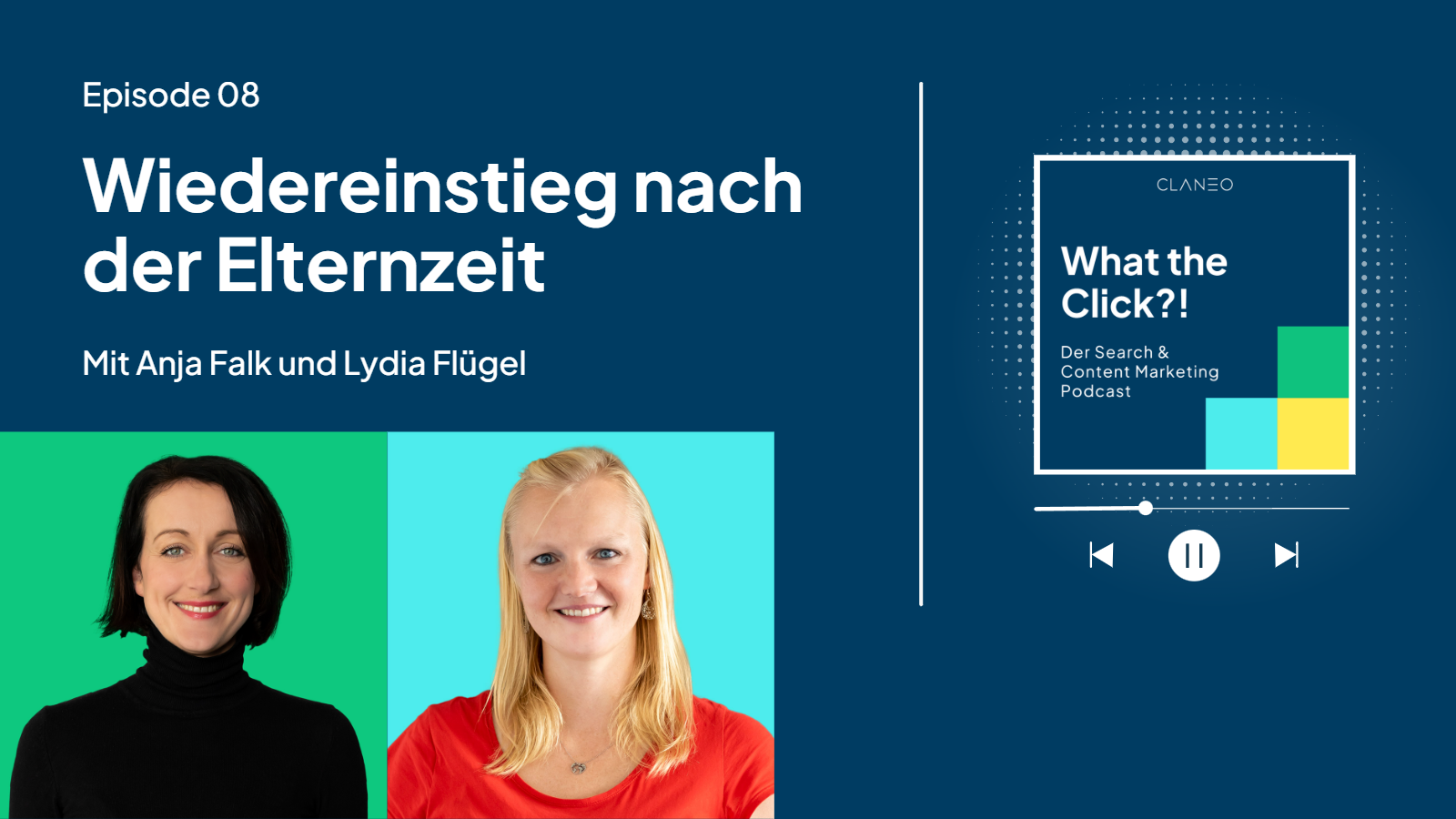 In dieser What the Click?!-Folge sprechen Anja Falk und Lydia Flügel über den Wiedereinstieg nach der Elternzeit bei Claneo.