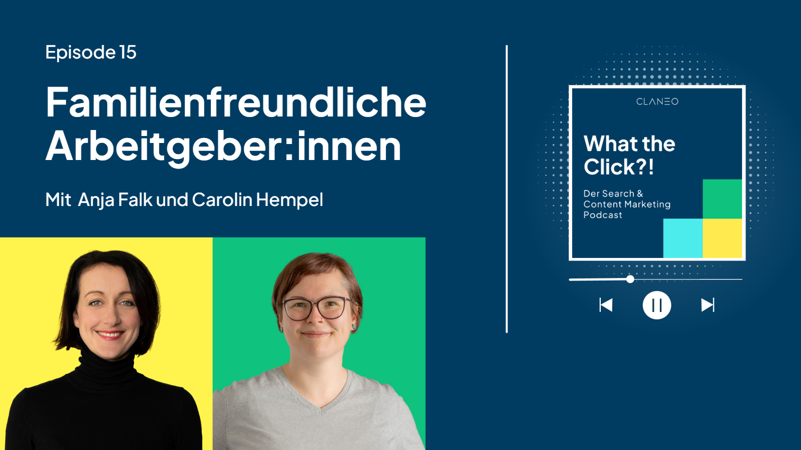 In dieser What the Click?!-Folge sprechen unsere Claneo-Expert:innen Anja Falk und Carolin Hempel über das Thema Familienfreundlichkeit im Job.