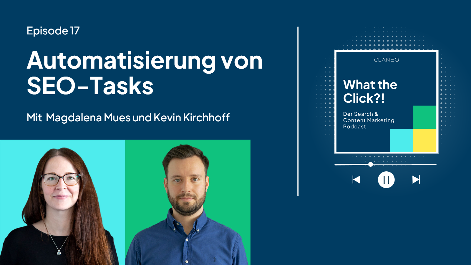 In dieser What the Click?!-Folge sprechen unsere Claneo-Expert:innen Magdalena Mues und Kevin Kirchhoff über die Automatisierung von SEO-Tasks.
